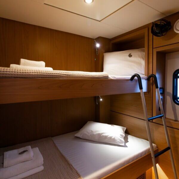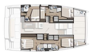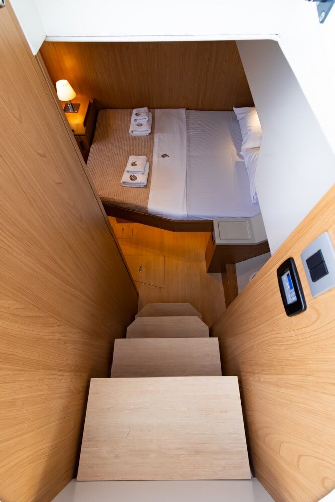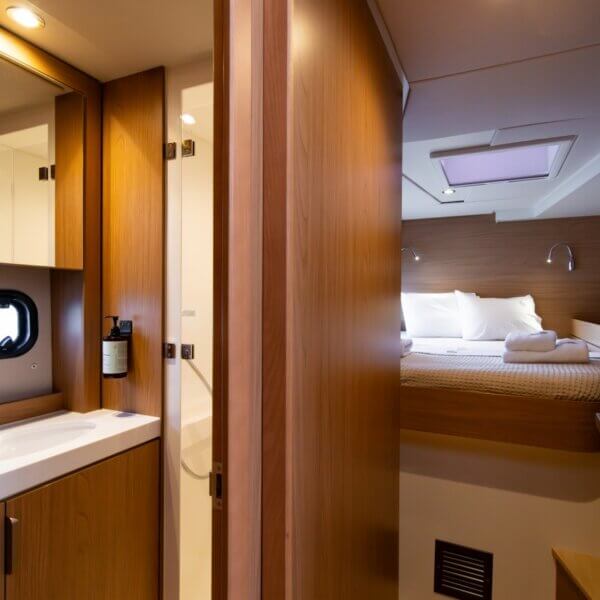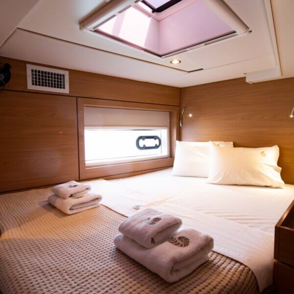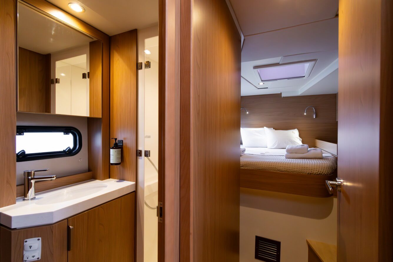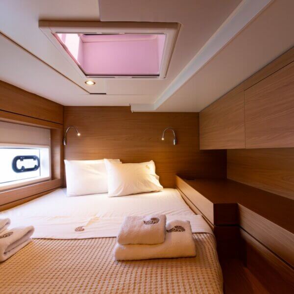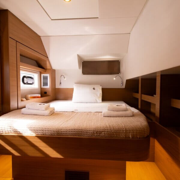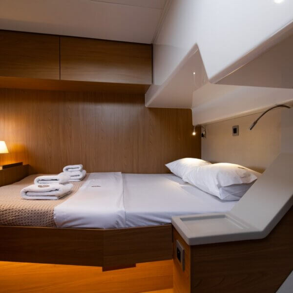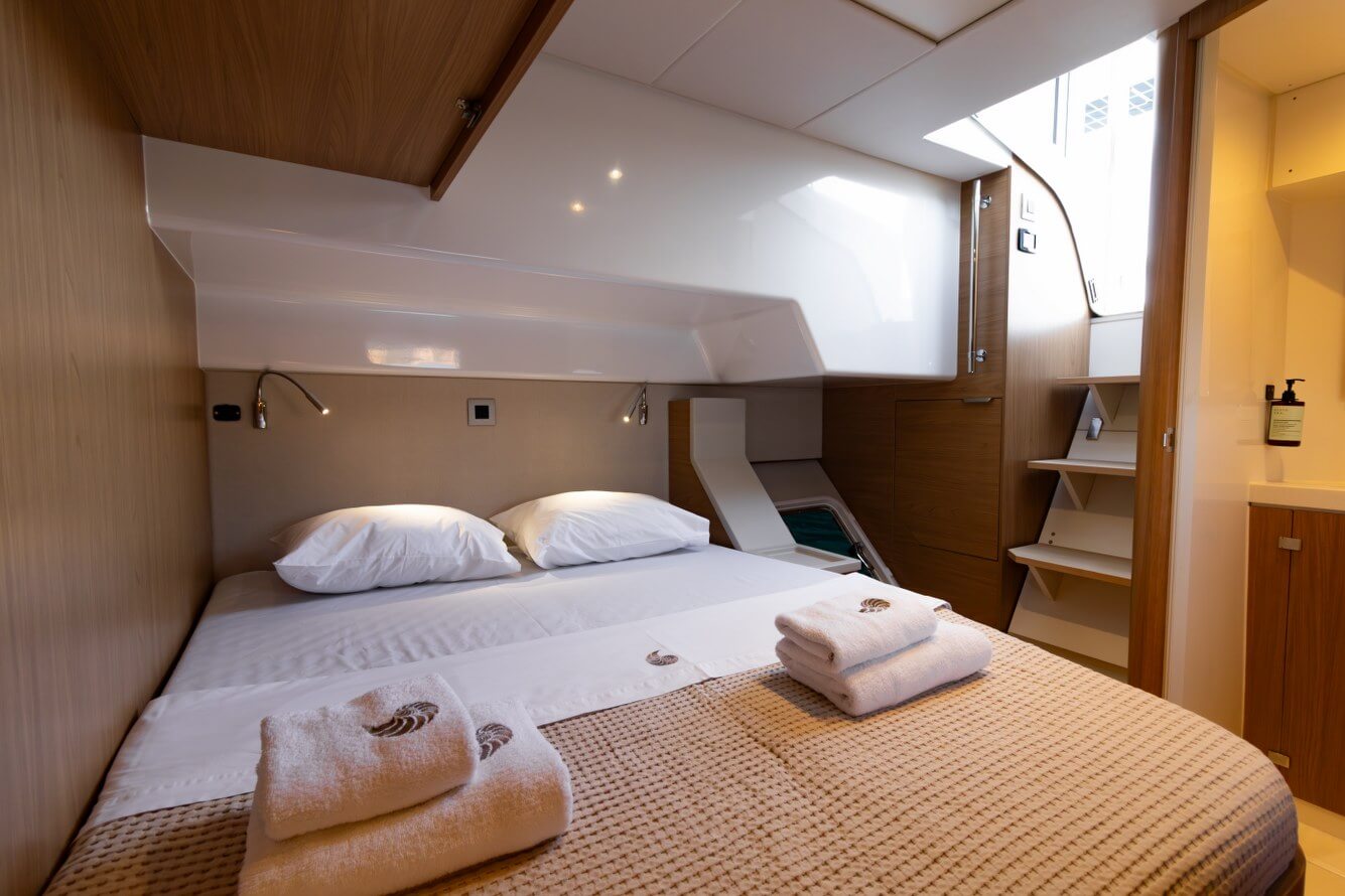 Designed for long-term voyages, the Bali 4.6 catamaran offers 95 m² of comfort and space, with a design by Piaton&Bercault. The huge Open Space accommodates a U-shaped galley, a saloon for 10 guests and a very large sofa. A dream at sea for your faraway destinations!