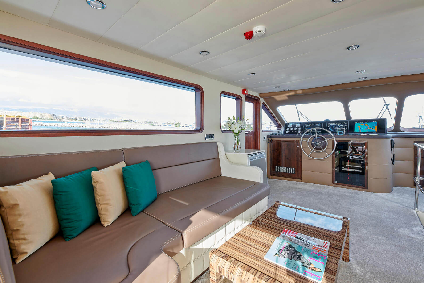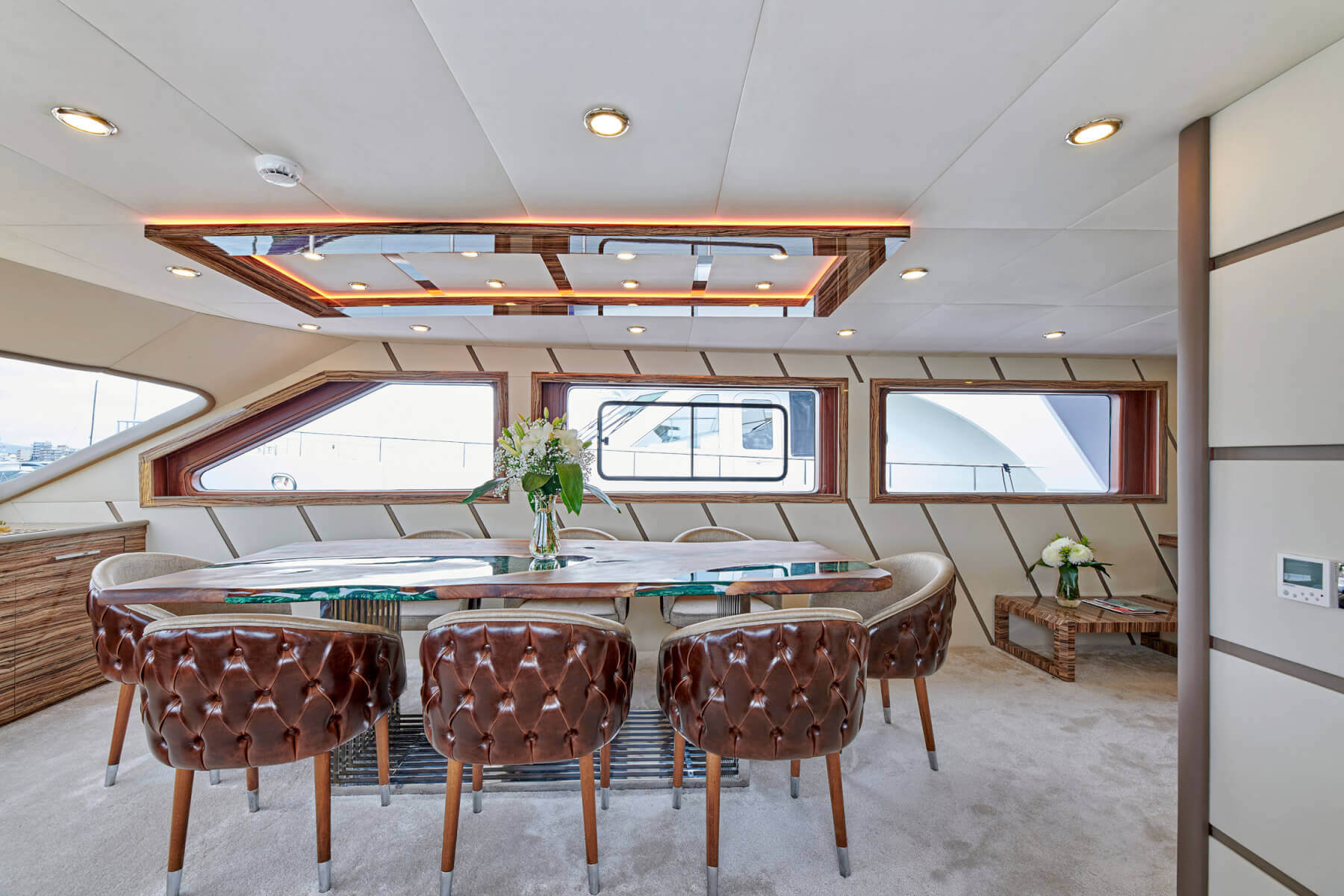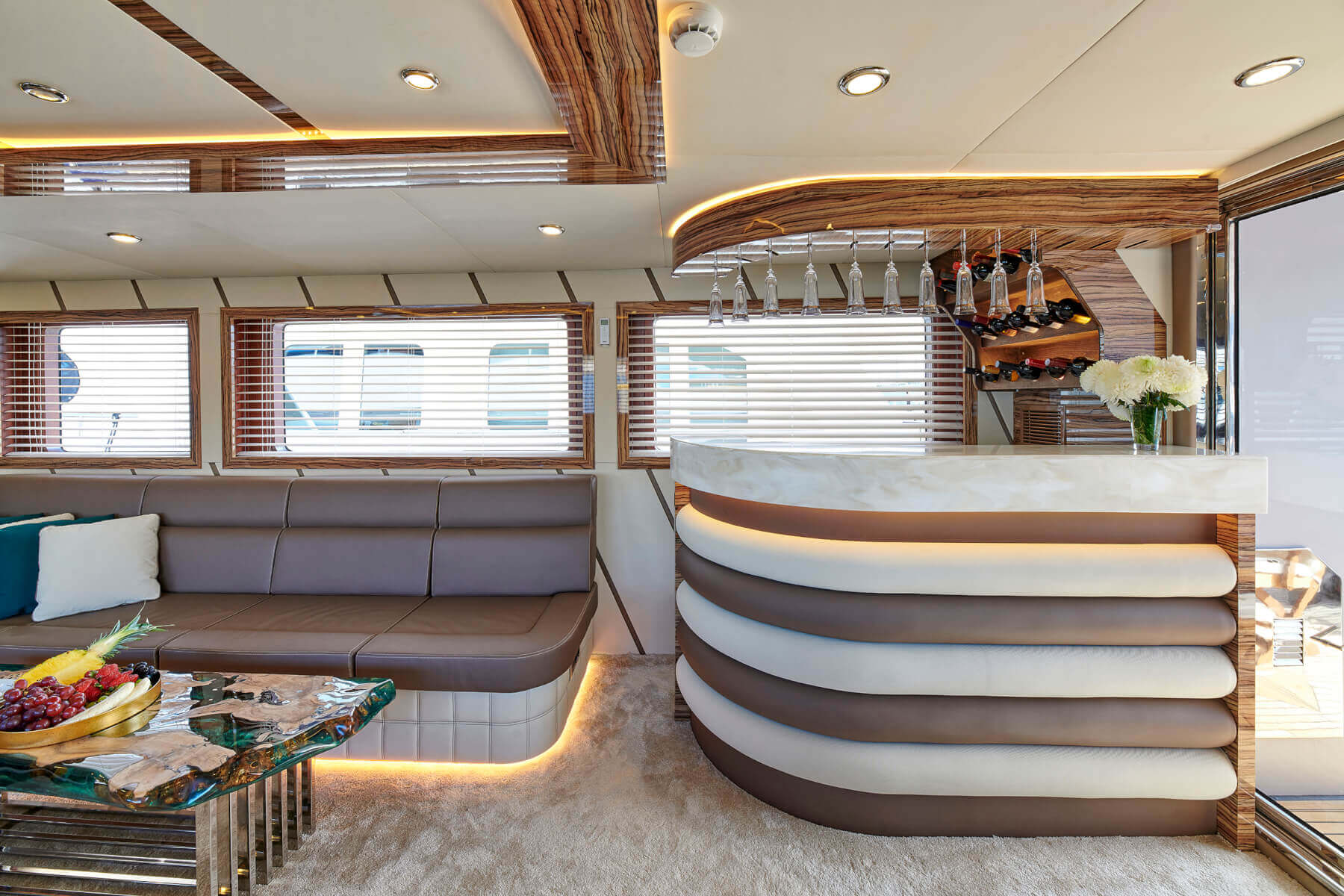 General Amenities: Deck jacuzzi, 6x Smart TV´s, Water maker, Onboard Wi-Fi Internet access, Full A/C, Wifi TV with Bose Soundbar System, Business Corner with printer, Ipad, Macbook, Nespresso Machine, Full equipped Bar, 2x Icemaker, USB Charging in all cabins & Decks, Hair dryer in all cabins, Beauty services, Dance classes, Show programs upon request with extra charge.