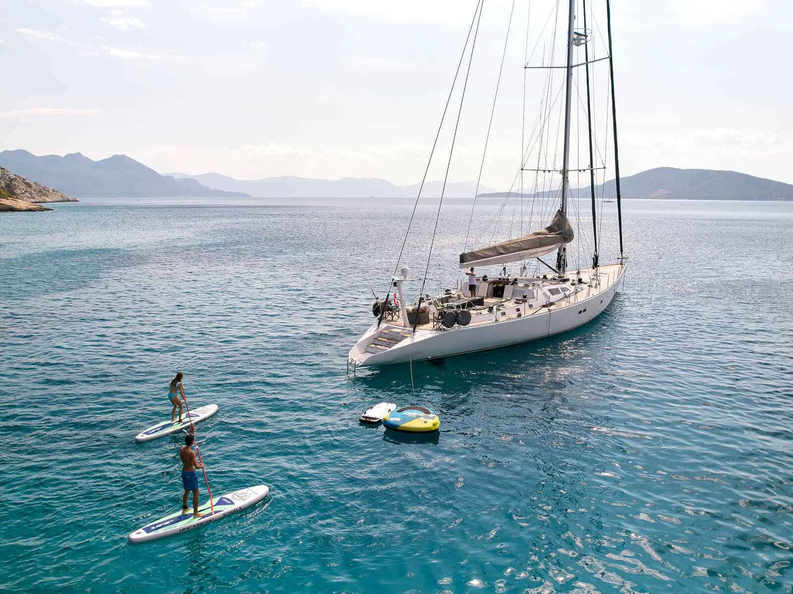 Glamorous aesthetics paired with superior performance for smooth cruises in the most seductive destinations of the Greek islands. Aizu was created to offer unparalleled luxury through an unforgettable summer adventure. She’s the perfect choice for both large groups of friends and families and can accommodate up to 8 charter guests for a relaxing stay.